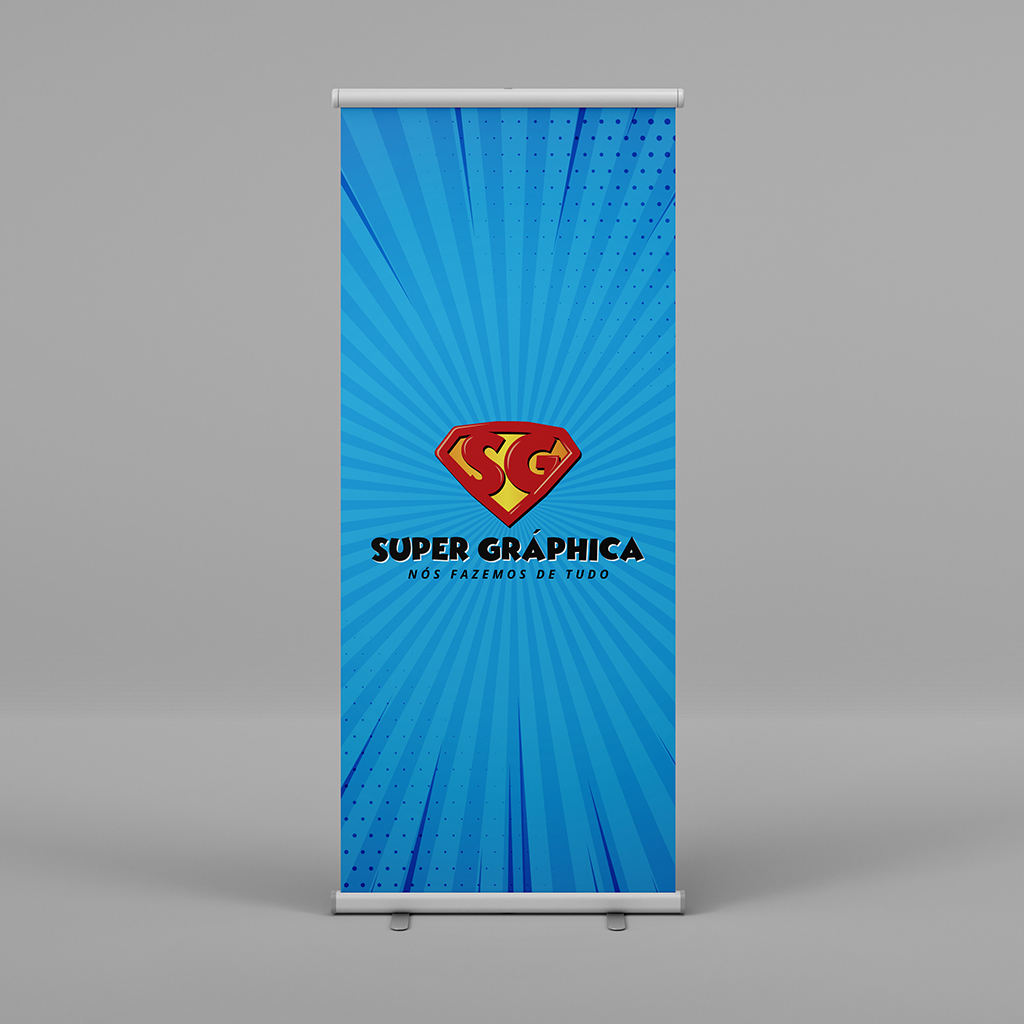 Banner  80 x 200 cm, impressão 4×0, Lona Brilho 440g, refile, sem enobrecimento, suporte roll-up
