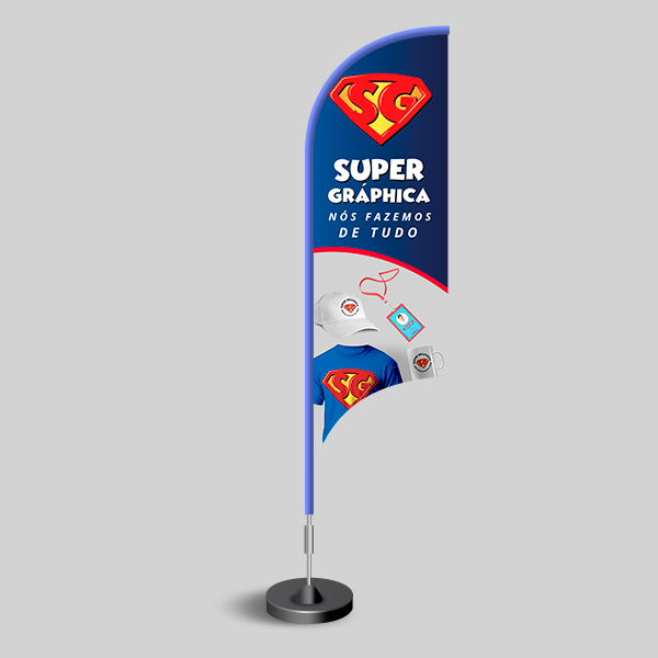 Wind Banner Completo para Piso G – Modelo Faca – 3000x650mm em Tecido Poliester – 4×4 – Sem Enobrecimento – Dupla Face Costurado com Estrutura e Base